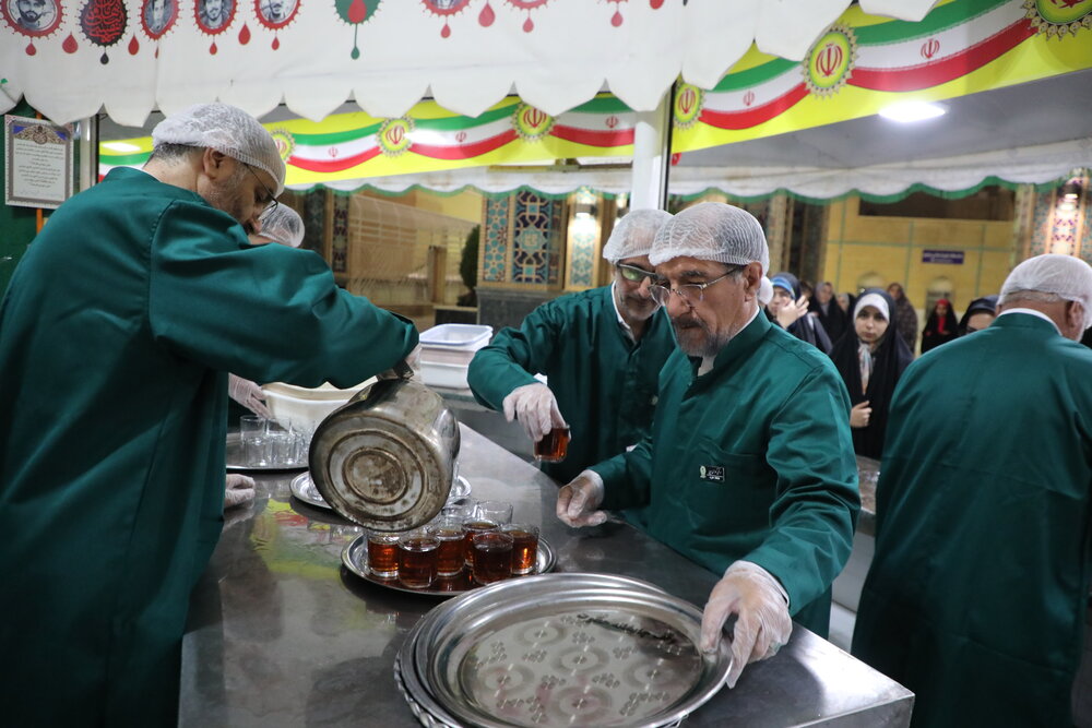 اینجا به تعبیر خدام چای خانه، پشت میز با جلو میز تفاوت ندارد. جلو میز مربوط به زائرانی است که از راههای دور و نزدیک خودشان را بارگاه منور امام رئوف (ع) رساندهاند و بنا دارند خستگی تشرف را با یک استکان چای از تن به در کنند، اما پشت میز هم سرشار و از عشق وشور است و هرکس را ببینید، مشغول کاری است تا از بارگذاشتن سماور و دمکردن چای گرفته تا شستن صدها استکان، هر ساعت از حضور در چای خانه با شکلی از خدمت همراه باشد. حتی برخیهایشان از شدت دل دادگی در حین خدمت ندایی سر میدهند و با صدای بلند، ابیاتی در وصف کرامت امام رئوف یا اظهار ارادت به علیبن موسیالرضا (ع) میخوانند. از حدود ساعت ۷صبح که سومین کشیک خدمتی هنرمندان در چای خانه آغاز میشود، استادان بزرگ هنر انقلاب اسلامی، به تنهایی یا در کنار هم از راه میرسند. برخیهایشان به چشم مردم آشناتر هستند و از کوروش زارعی بازیگر و نجمالدین شریعتی مجری گرفته تا عبدالحمید قدیریان نقاش و حتی مسعود نجابتی طراح، موردتوجه زائران قرار میگیرند. از زبان برخی زائران شنیدم که تصور میکردند این حضور، گوشهای از یک برنامه هماهنگشده همچون زیارت دستهجمعی هنرمندان باشد، اما چهرهها که به چای خانه رسیدند، پیش چشمان مبهوت مردم ردای سبز خدمت را به تن کردند، دستکش و کلاه بر سر گذاشتند و با ندای «ای صفای قلب زارم»، دست به استکان شدند. چهرهها پیش از اینکه به چای خانه برسند، در حلقه اجتماع مردم محاصره شده بودند و تلفنهای همراه برای ثبت خویشانداز و ضبط تصاویر این حضور بالا رفته بود، اما ردای خدمت که بر تن هنرمندان نقش بست، انگار اشتیاق مردم برای ثبت این لحظات بیشتر شد و هرکس با تلفن همراهش به صورت زنده در فضای مجازی یا در قالب فیلم برداری، تصاویری از این لحظات ناب را برای خودش یا دیگران ثبت میکرد.