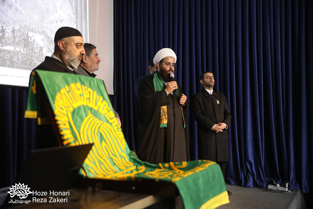 خادمین حرم رضوی پس از حضور در رواق شهدای گمنام حوزه هنری، فاتحه‌ای نثار روح شهدا کردند و در ادامه با نوای «رضا جانم» وارد کلاس استاد شهریار بحرانی شدند و به ذکر خاطره‌ای از تیم پرچم حرم رضوی و نجات جان زندانی محکوم به اعدام پرداختند.