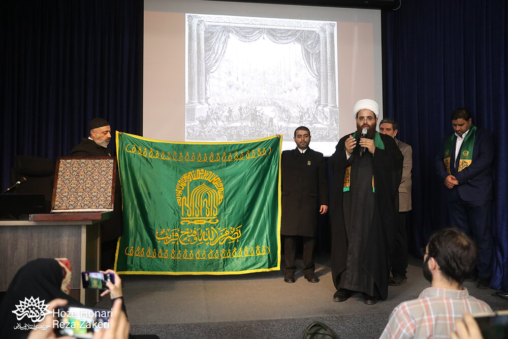 به گزارش روابط عمومی حوزه هنری انقلاب اسلامی، خادمان حرم علی‌بن موسی الرضا (ع) در آستانه سالروز میلاد هشتمین اختر تابناک امامت؛ عطر حرم رضوی را به حوزه هنری هدیه کردند و پرچم نورانی بارگاه ملکوتی امام رئوف را به حوزه هنری آوردند.