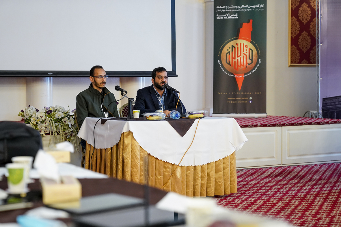 به گزارش روابط عمومی حوزه هنری، مراسم افتتاح کارگاه بینالمللی طراحی پوستر وحدت با موضوع فلسطین محور وحدت جهان اسلام و شعار « قدس الامة» با شرکت ۳۰ هنرمند از ۱۰ کشور مختلف چهارشنبه ۵ آبان ماه ۱۴۰۰ با حضور ابوشریف، نماینده جنبش جهاد اسلامی فلسطین در ایران و حجه الاسلام قمی، رئیس سازمان تبلیغات اسلامی کشور در هتل پارسیان انقلاب برگزار شد.