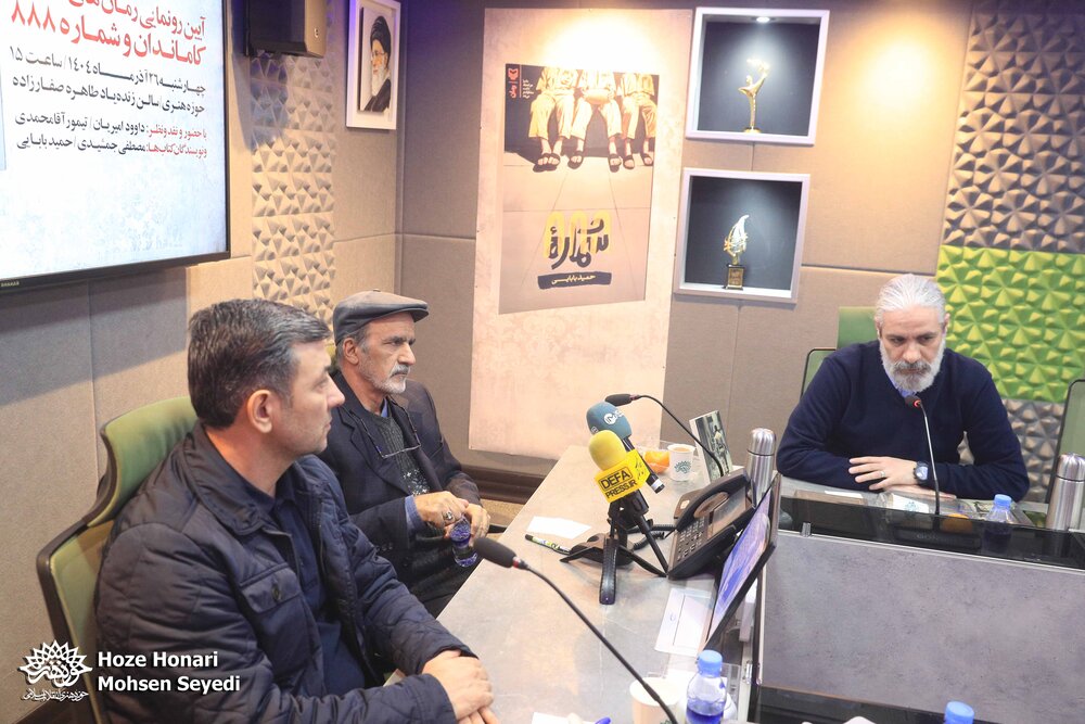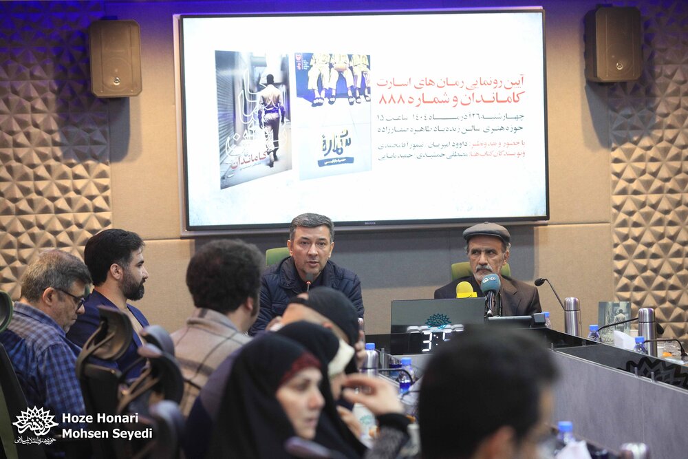 آیین رونمایی از دو رمان «کاماندان» و «شماره ۸۸۸» چهارشنبه ۲۶ آذرماه ۱۴۰۴، با حضور حمید بابایی و مصطفی جمشیدی نویسندگان آثار، داوود امیریان داستاننویس و طنزپرداز، تیمور آقامحمدی نویسنده و منتقد و ساسان ناطق مدیر دفتر هنر و ادبیات اسارت در سالن طاهره صفارزاده حوزه هنری برگزار شد.