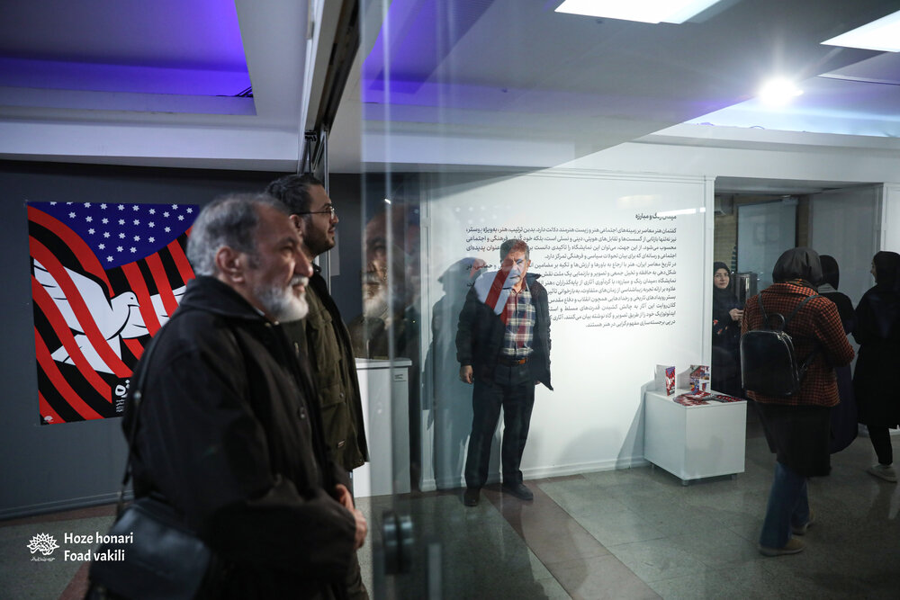 نمایشگاه «میدان رنگ و مبارزه» با موضوع استکبار امریکایی امروز ۱۲ بهمن ۱۴۰۴ در نگارخانه عالی افتتاح شد.